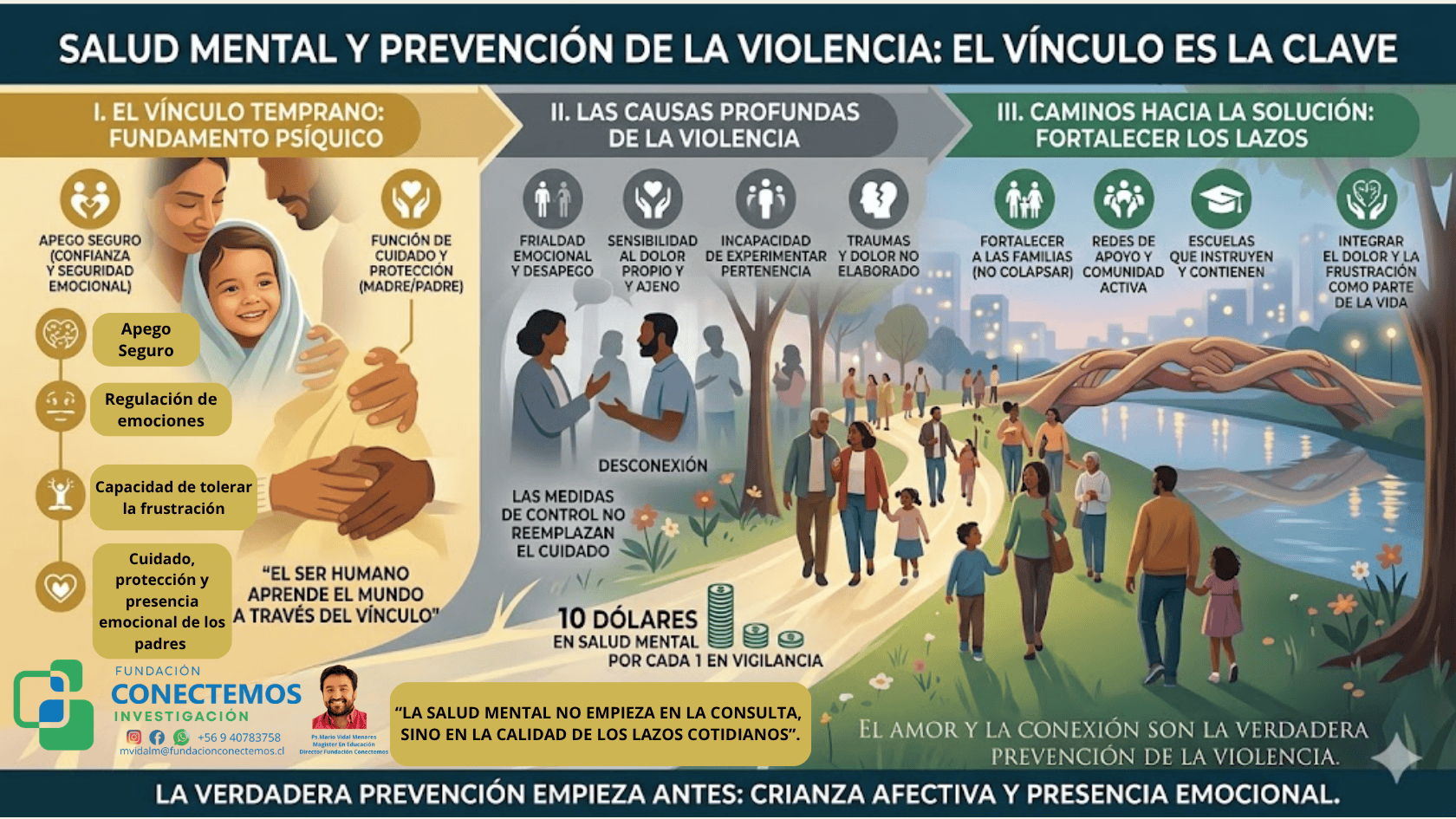 En esa línea, resulta especialmente significativa la reflexión planteada en el reportaje de El Mercurio del domingo 5 de abril de 2026, donde Elena Savoia, directora de un laboratorio de prevención de violencia en Harvard, sostiene una idea contundente: por cada dólar que se invierte en vigilancia, se necesitan otros 10 en salud mental. La afirmación no solo interpela las políticas públicas, sino también nuestra manera de comprender el origen del malestar humano.
